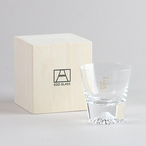 Traditional Tajima Glass Edo Glass Mt. Fuji Mini Rock Glass in Wooden Box Made in Tokyo Japan