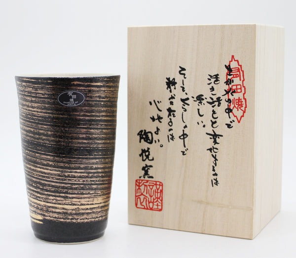 Arita Yaki Arita Ware Japanese Traditional Porcelain Beer Sake Cup Bar Ware Drinkware (Gold) in Wooden Box.
