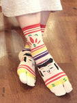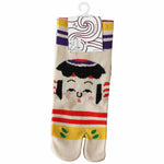 Japanese traditional tabi style socks; Kokeshi doll design.