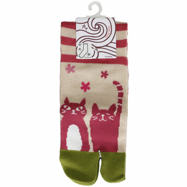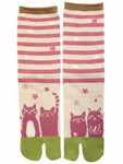 Japanese traditional tabi style socks. Cat and cherry blossoms design.