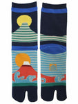 Japanese traditional tabi style socks; Red Mt. Fuji design.