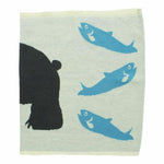 A bear and salmon design inspired by the Carved Wooden Bear made by the Ainu people in Japan.