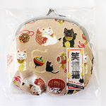 JZZFA303-585-BE : Japanese Traditional Chirimen Gamaguchi Coin Purse Lucky Charm Design (Beige)
