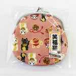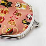 JZZFA303-585-PI : Japanese Traditional Chirimen Gamaguchi Coin Purse Lucky Charm Design (Pink)