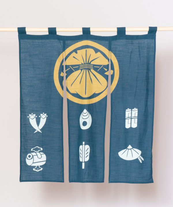 JZZKAYA7ISP1160-NV : Noren Japanese Doorway Curtain - Lucky Charms Design - (Short / Navy)