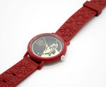 The scents emitted by “KAORU” are generated by silicon straps which have undergone a unique process. These watches are 100% made in Japan and are a collaboration between a Japanese flavoring company, a rubber company, and a watch manufacturer.The silicon strap has a supple quality, wrapping in a way that epitomizes a Japanese sense of subtleness. *The surface of silicon strap adopts the special pattern of hemp leaf.